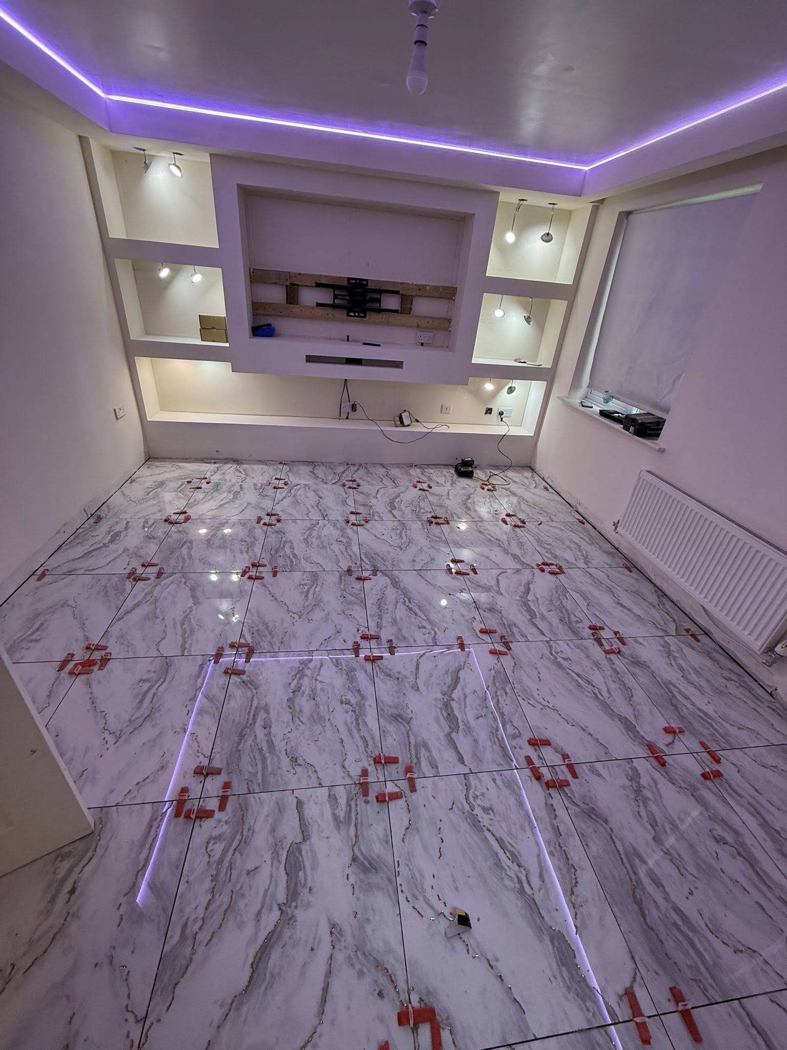 High-quality wall and floor tiling for kitchens, bathrooms, and living spaces with perfect alignment and finish.